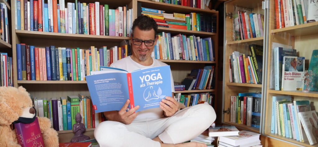 Einige Bücher zum Thema Schulter-Nacken habe ich in meinem Yoga-Buch-Blog rezensiert. Empfehlenswert bei Nackenverspannungen finde ich das Buch „Aufrechter Nacken“ aus dem TRIAS Verlag, „Heilendes Yin-Yoga“ (ideal bei Nackenverspannungen und Verspannungen der Schulter, auch ideal für Anfänger), „Kieferyoga“ (nächtliches Zähneknirschen áde – viele Verspannungen im Nacken können auch mit dem Kiefer zusammenhängen). Der Yogatherapeut Dr. Peter Poeckh gibt im Buch „Fit, Schmerzfrei und Gesund bis ins hohe Alter“ wertvolle Tipps, auch für Leute mit Bildschirmarbeit und Schulter-Nacken Problemen. Vom gleichen Autor das ebenfalls tolle Buch „Rücken Schultern Nacken„. Die sehr wertvolle Atlasübung (oberster Wirbel, der auch als Gelenk ausgebildet ist) stammt vom bekannten Physiotherapeuten Steffen Barth und seinem Werk „Die Reha Revolution„. Heike Höfer hat einen Coach für Kiefer & Nacken herausgebracht, der auch eine Hilfe sin kann, insbesondere bei chronischen Verspannungen. Eines meiner ersten sehr guten Yogatherapie Bücher stammt von Tanja Walther und Sabine Dorscht: „Yoga als Therapie“ und als Lehrbuch vom weltweit führenden Faszienforscher Dr. Robert Schleip „Faszien in Sport und Alltag„. Über meinen MANUS Faszientherapie Lehrgang konnte ich Dr. Schleip in einem Webinar persönlich kennenlernen. Viele Verspannungen im Kiefer, Nacken, Schulterbereich und Verklebungen können durch gezieltes Faszientraining – wie ich auch in meinen Faszienkursen anbiete – erfolgreich (wenn auch mit Geduld und Disziplin und eventuell zusätzlichen Massagen) gelöst werden.